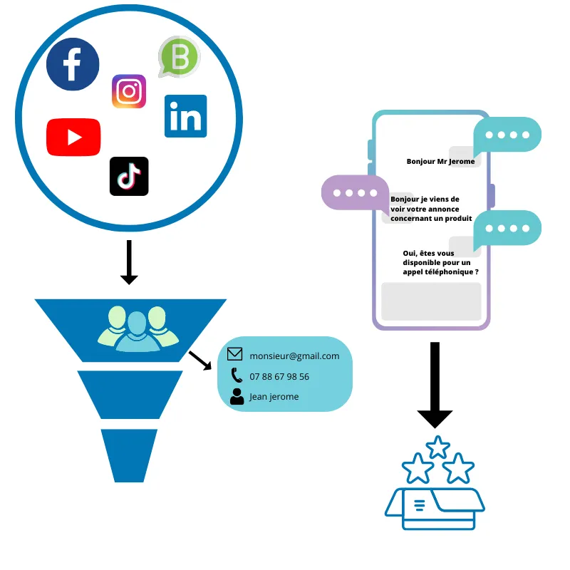 Vos prospects arrivent directement dans une APP mobile, recevez toutes les informations demandées et contactez les par mail et sms en direct ou via des campagnes déjà créées pour garder vos Hot Leads